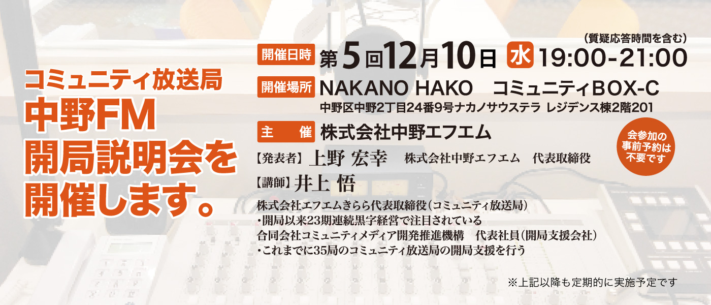 中野FMは、インターネットでも同時に放送をお届けします。