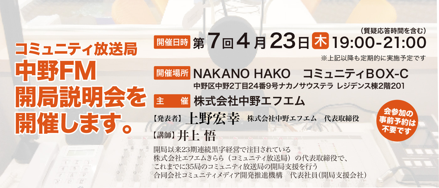 そこで、私たちのまち中野にも地域ラジオ放送局があったら素晴らしいと思いませんか。