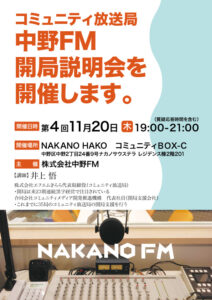 弊社は、中野区にコミュニティFM開局を目指し日々活動しております。